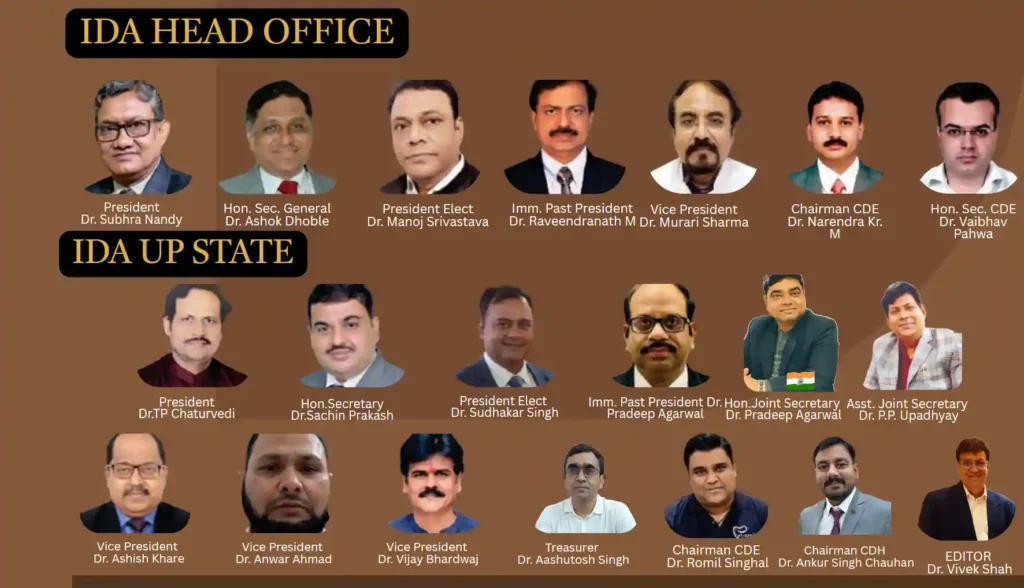 Organizing ChairmanDr. Manoj SrivastavaBhagwandas Nagar, Sigra, VaranasiPhone: 09415 219787Email: msmksrivastava@gmail.com Organizing SecretaryDr. Amar AnupamMahmoorganj, VaranasiPhone: 94159 90600Email: dramaranupam@gmail.com Conference SecretaryDr. Amit ShuklaMob.: 94150 87837 Treasurer Dr.Vikas Tiwari Mob.: 9935900221 Organizing Co-ChairmanDr. Murari SharmaMob.: 98391 41200 President IDA VaranasiDr. Radha KatiyarMob.: 94531 33232 Scientific ChairmanDr. T.P. ChaturvediMob.: 94515 70848 Scientific Co-ChairmanDr. Romesh SoniMob.: 96168 03332